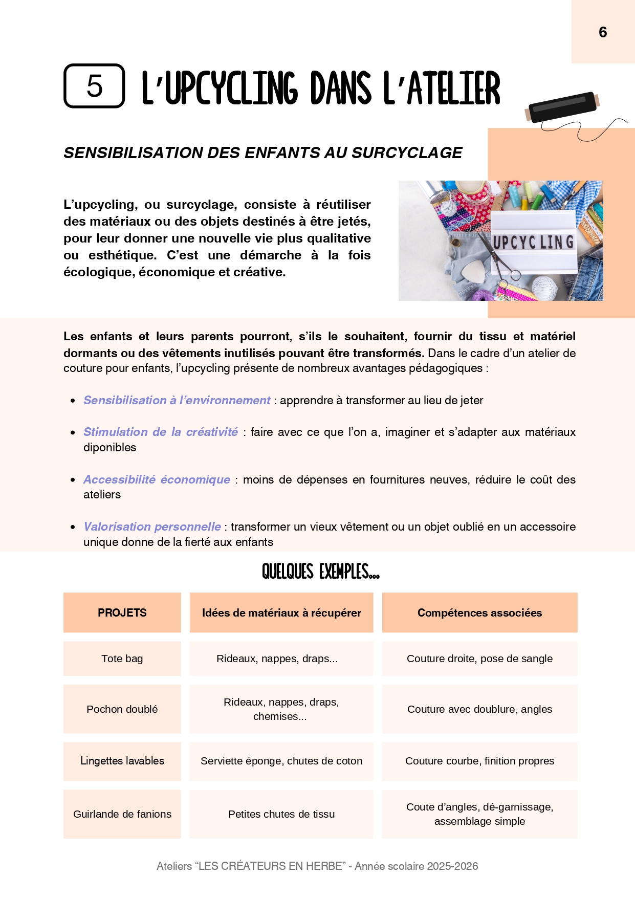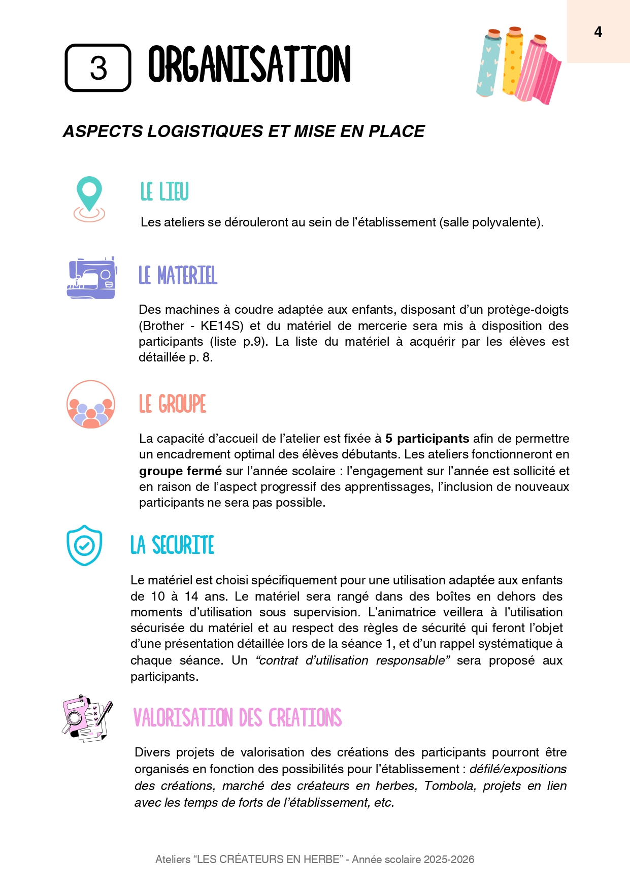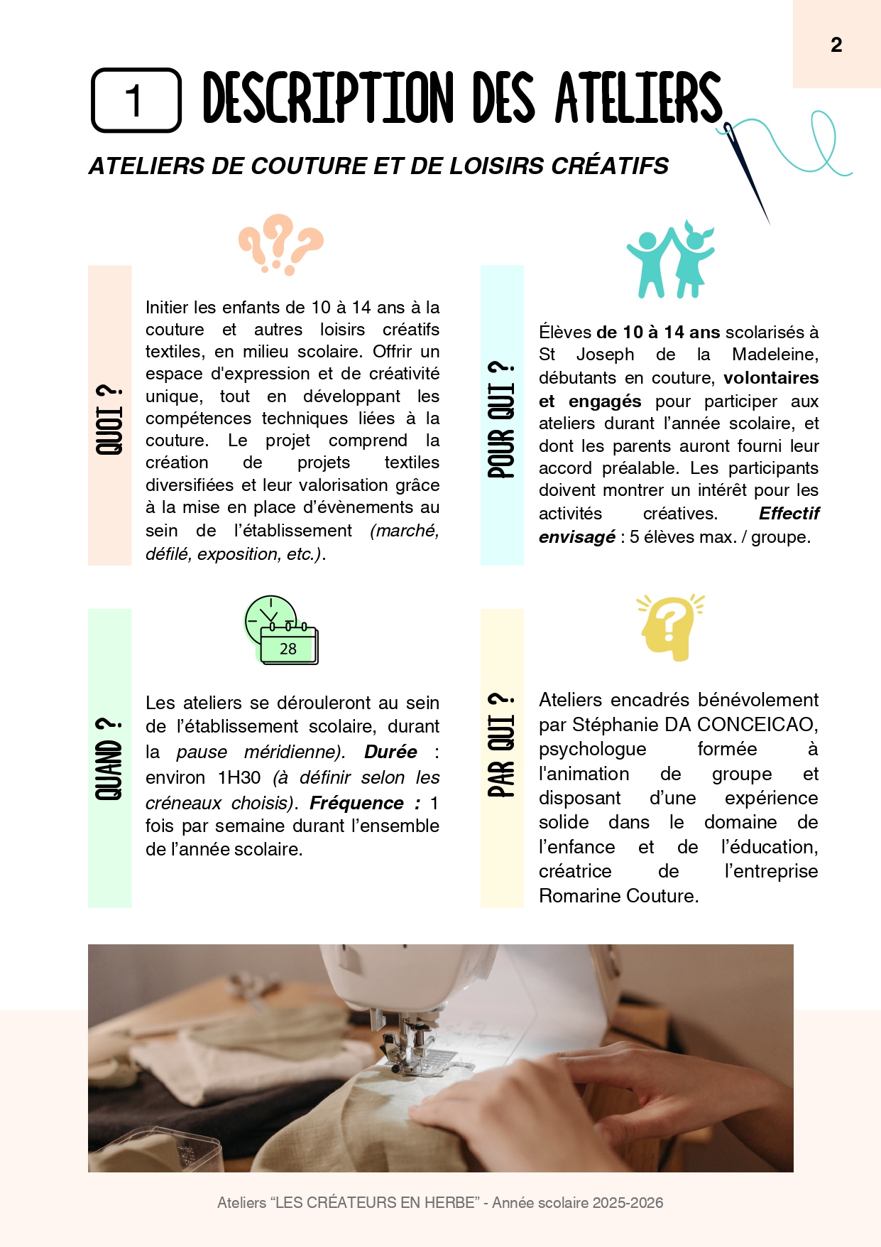 Atelier couture réservé aux élèves des classes de sixième et de cinquième.
